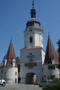 We dwaalden wat door de oude en smalle straatjes, en kwamen tenslotte uit bij de oude Dominicaner kerk en klooster dat nu in gebruik is als museum. In dat museum aandacht voor moderne kunst en voor het lange verleden van de stad Krems en buurstad Stein. In de kelder van het klooster was een hele afdeling gewijd aan de wijnbouw waar deze streek ook bekend om is.