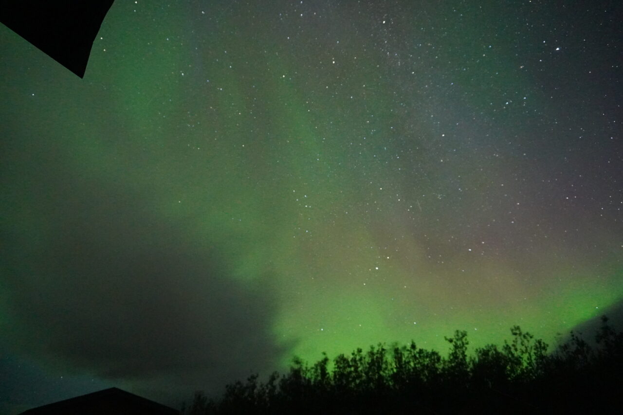 Om een uur of drie werd ik wakker en keek door het raam naar buiten. Ik kon het niet geloven, daar was het dan: de Aurora Borealis!