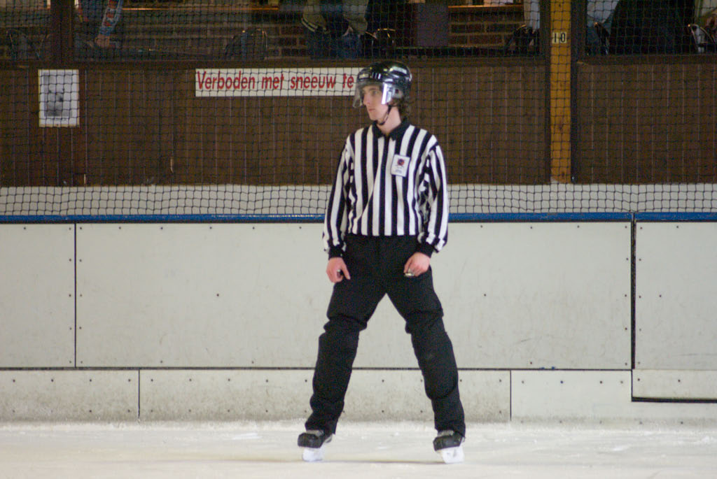 Zondagmorgens verscheen iedereen weer min of meer fit aan het ontbijt en niet veel later zaten we al weer in het Kempische ijsstadion waar het toernooi verder ging. Lang duurde het niet. Heerenveen Flyers speelde nog één wedstrijd, de halve finale. Die wedstrijd werd ontsierd door het feit dat er opeens dingen gebeurden die volgens het reglement helemaal niet konden, maar protesten van Heerenveen werden door de toernooileiding naast zich neergelegd. Enfin, het voert te ver om daar hier nog op door te gaan, maar een en ander leidde er toe dat Heerenveen Flyers zich terug trok uit het toernooi en de spelers al vroeg naar Fryslân terugkeerden. Referee JvdM ging met hen mee, GvdM en JvdM bleven achter in Turnhout.