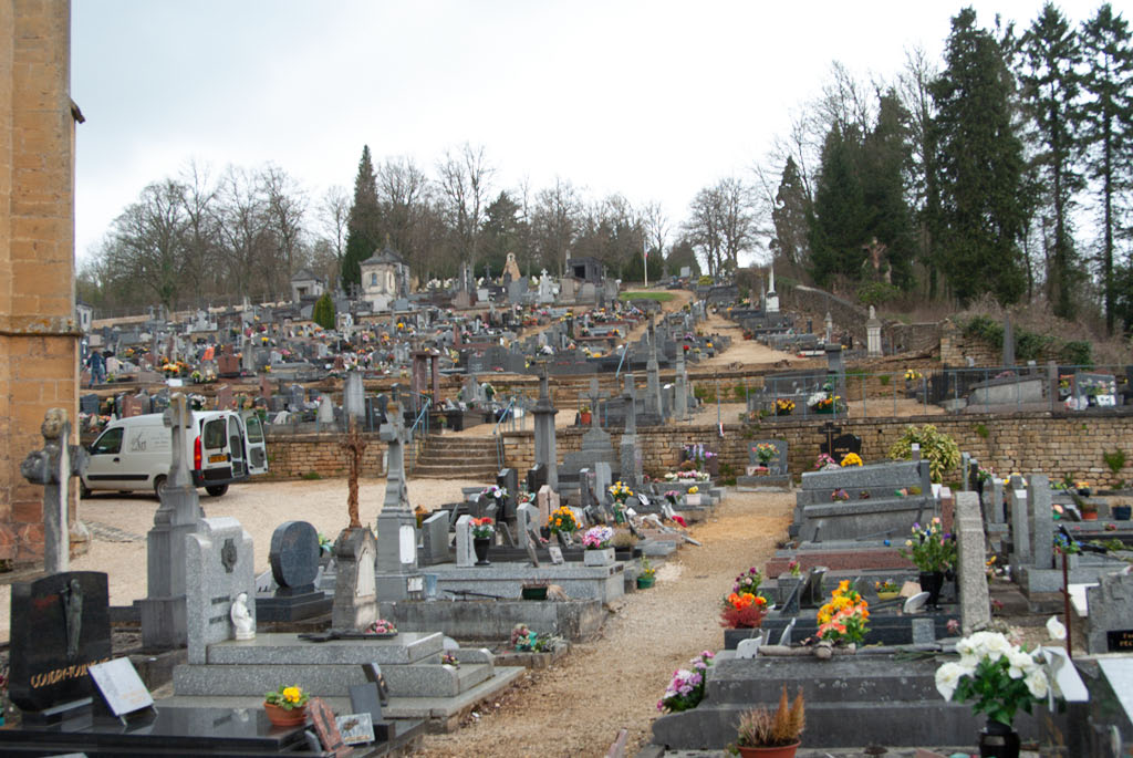 We parkeerden de auto bij de kerk van St. Agatha (ook nog nooit van gehoord). En zo kwamen we terecht op een Franse begraafplaats. In Frankrijk maken ze er best wel werk van als men dood gaat. Het ene grafmonument is nog groter dan het andere, sommige monumenten zien er zelfs uit als kleine huisjes met deuren en ramen er in! De begraafplaats was tegen een heuvelkant aangelegd. Helemaal bovenaan was een oorlogsbegraafplaats uit de Eerste Wereldoorlog (la grande guerre). Even verderop lag nog een Duitse begraafplaats, eveneens uit de Eerste Wereldoorlog. Honderden witte kruisjes waren zichtbaar tot aan de top van de heuvel toe. Pas daar blijkt hoe zinloos een oorlog is. Op de Duitse begraafplaats vind je ook twee massagraven. Op gedenkstenen is aangegeven dat daar Franse en Duitse soldaten gezamenlijk zijn begraven. Het ene moment schiet je op elkaar en een tijdje later lig je gezamenlijk in één graf. Vreemd!