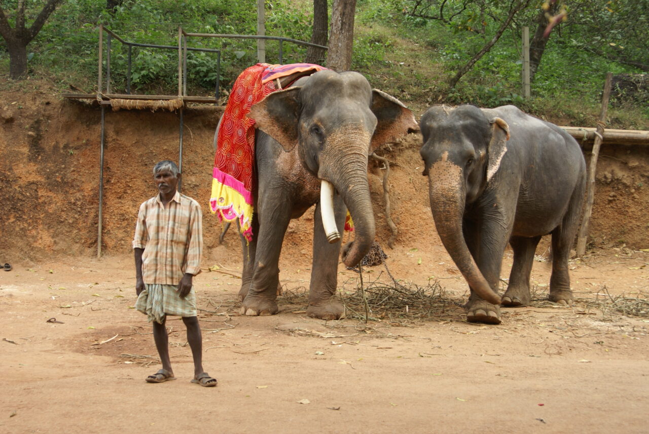 We krijgen ook olifanten te zien. Twee stuks, die vastgeketend zijn, maar door de toeristen geaaid kunnen worden. Ook is het mogelijk de dieren te voeren, daarvoor kun je bij een stalletje voer voor hen kopen. Een ritje op de dieren behoort ook tot de mogelijkheden, maar daar zien we maar vanaf.